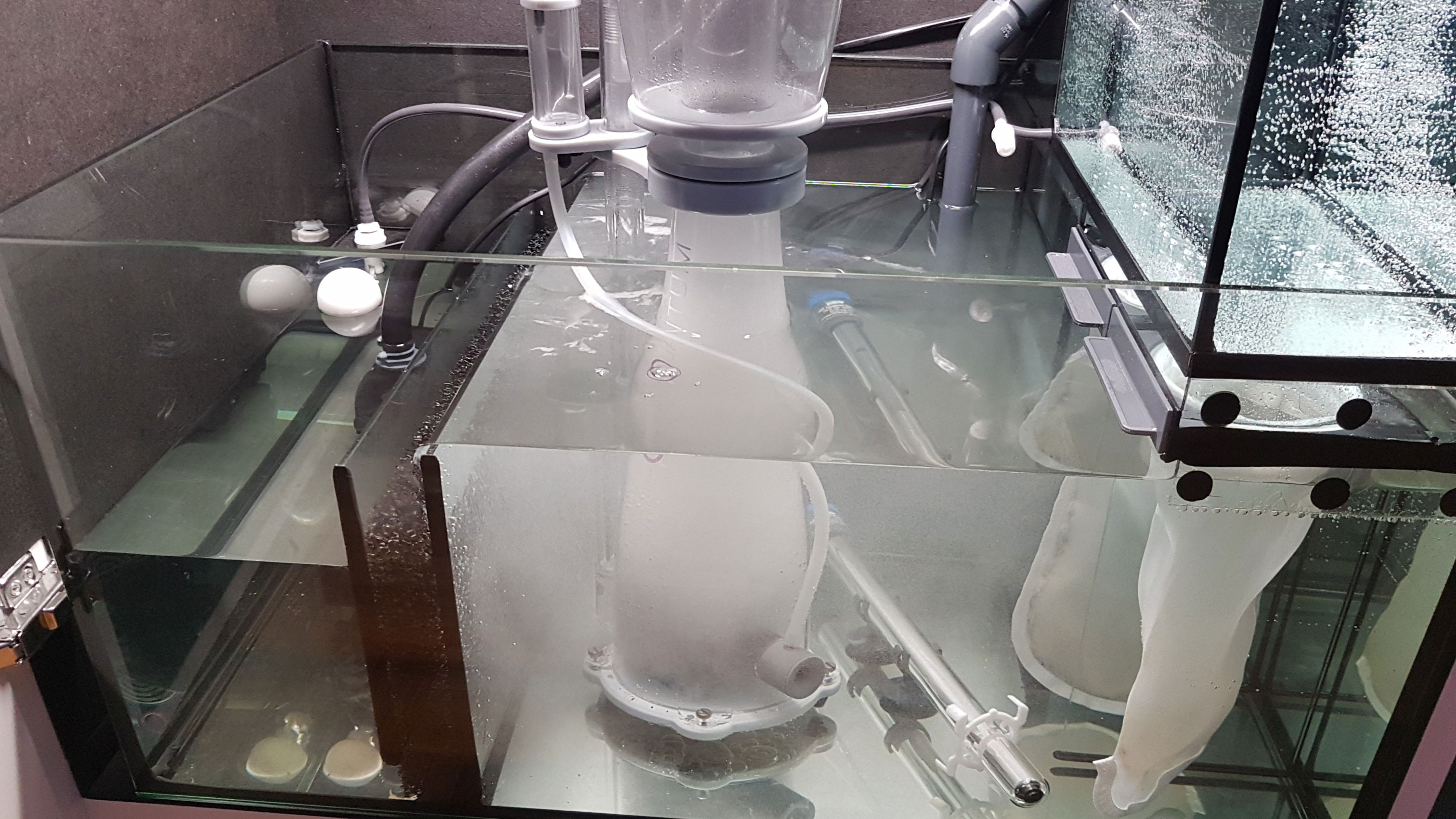 den Abschäumer von Beginn an laufen lassen und erstmal trockener einstellen, der läuft sich dann mit der Zeit ein (Schaumbildung), da musst Du zu Beginn ein paar mal schauen das er Dir nicht überkocht. Später wenn die Schaumbildung "stabil" läuft wird er je nach Nährstoffwerte eingestellt, sprich niedrige Nährstoffwerte = trockene Abschäumung, hohe Nährstoffwerte = feuchte Abschäumung. Wie hoch ist denn aktuellen der Durchfluss durchs TB?