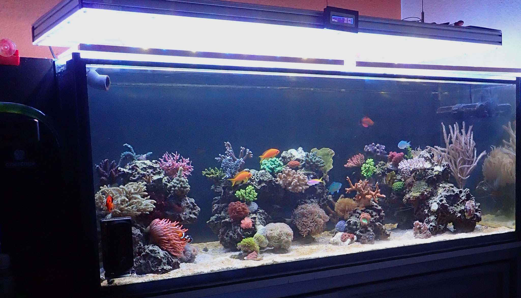 Wenn ich ehrlich bin habe ich, bis auf Dennis sein Becken, noch kein einziges gesehen was auch nur Ansatzweise vernünftig unter LED läuft. Ich meine jetzt nicht nur diese Cluster LEDs, sondern auch flächige LED Lampen.