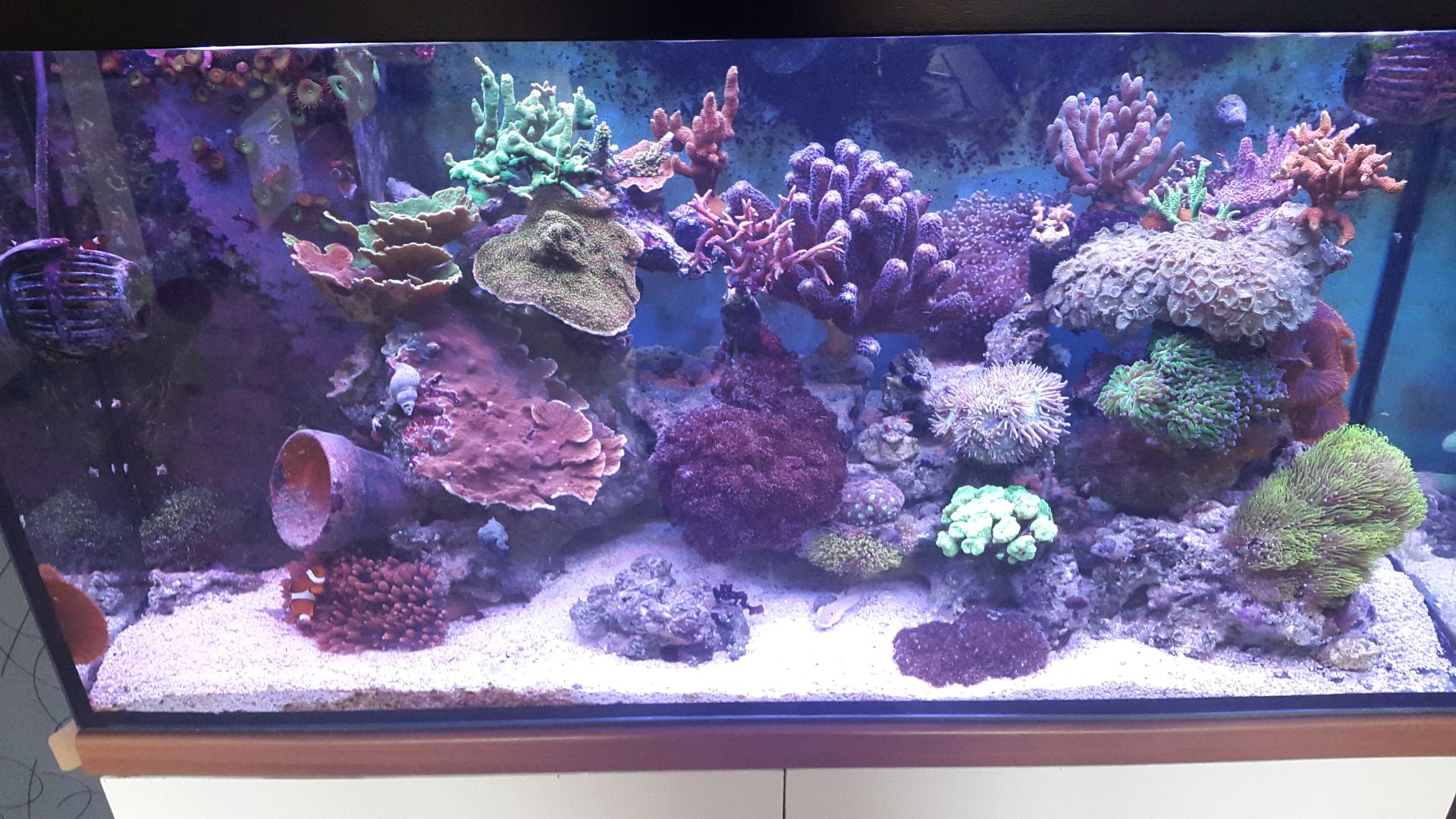 Aktuell bin ich nun in der 2. Woche nach der Etablierungsphase mit den Basics. Es gibt keinerlei Probleme. Zwischendurch leichte cyanos hier und da in rot und grün. Aber die habe ich mal ignoriert. Ist ja auch nicht so wild. Sonst bin ich der Meinung sieht alles gut aus. Die Farben sind etwas kräftiger geworden. Habe mir auch das Nutri complete zugelegt und zwischenzeitlich dosiert. Ca und Kh sind jetzt stabil durch das Balance system. Verbrauch liegt im Moment bei Kh = 1,5° und Ca = 0,7mg pro tag.
