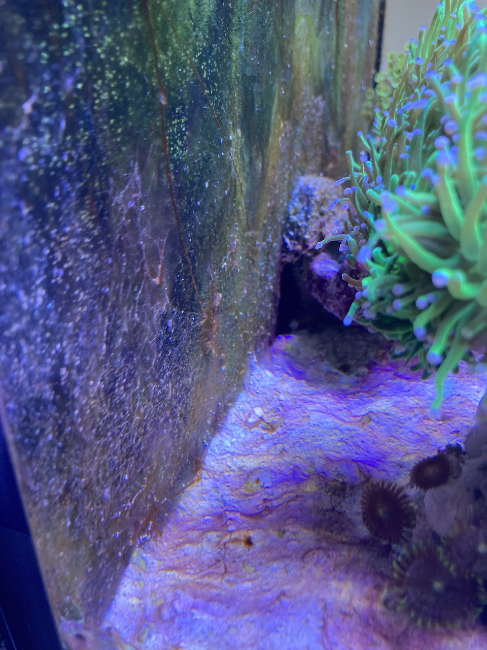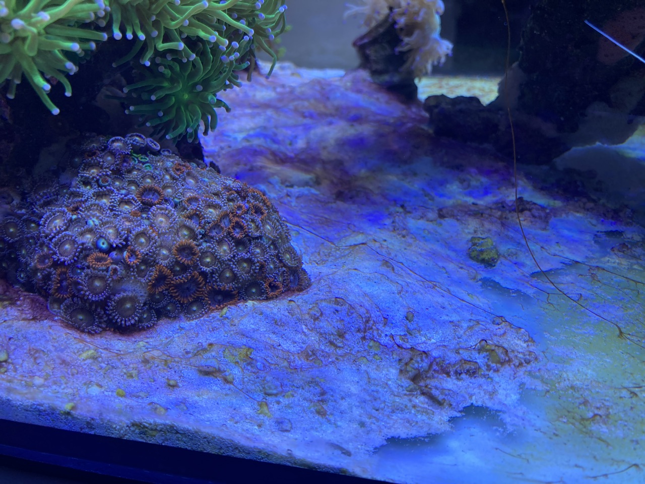 Gerade jetzt ist eh wieder Cyanozeit, möglicherweise auch einhergehend mit Veränderungen in der Wassertemperatur, Tageslänge etc. Ich würde da nicht immer direkt etwas versuchen zu machen. Die pinke Stylo schaut auch sehr von der oberen Koralle irgendwie bedrängt oder abgeschattet zu sein, hier auf jeden Fall mal schauen, ob Du vielleicht mit der Strömung etwas verbessern kannst. Aber sonst würde ich das eher erst mal laufen lassen. Das mit der Milka und dem kompletten Einziehen habe ich bei mir auch ab und zu mal, wenn die wurdemannis da drin rum springen. Und bei Dir sitzt so ganz unschuldig eine Putzergaarnele daneben... Könntest Du bitte noch ein Foto mit den Dinos auf einer Gesamtaufnahme zeigen, damit man sieht, wo die genau sind und welche Koralle die ggf. ausgestoßen hat bzw. ob das eine Plage ist oder nicht? Das wäre hilfreich.