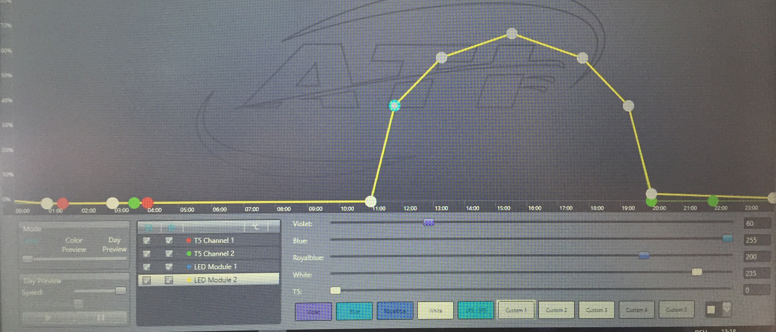Hier noch meine Lampeneinstellungen für den Beginn: Erste Bilder folgen sobald das Becken voll ist und die Lampen eingeschaltet werden können.