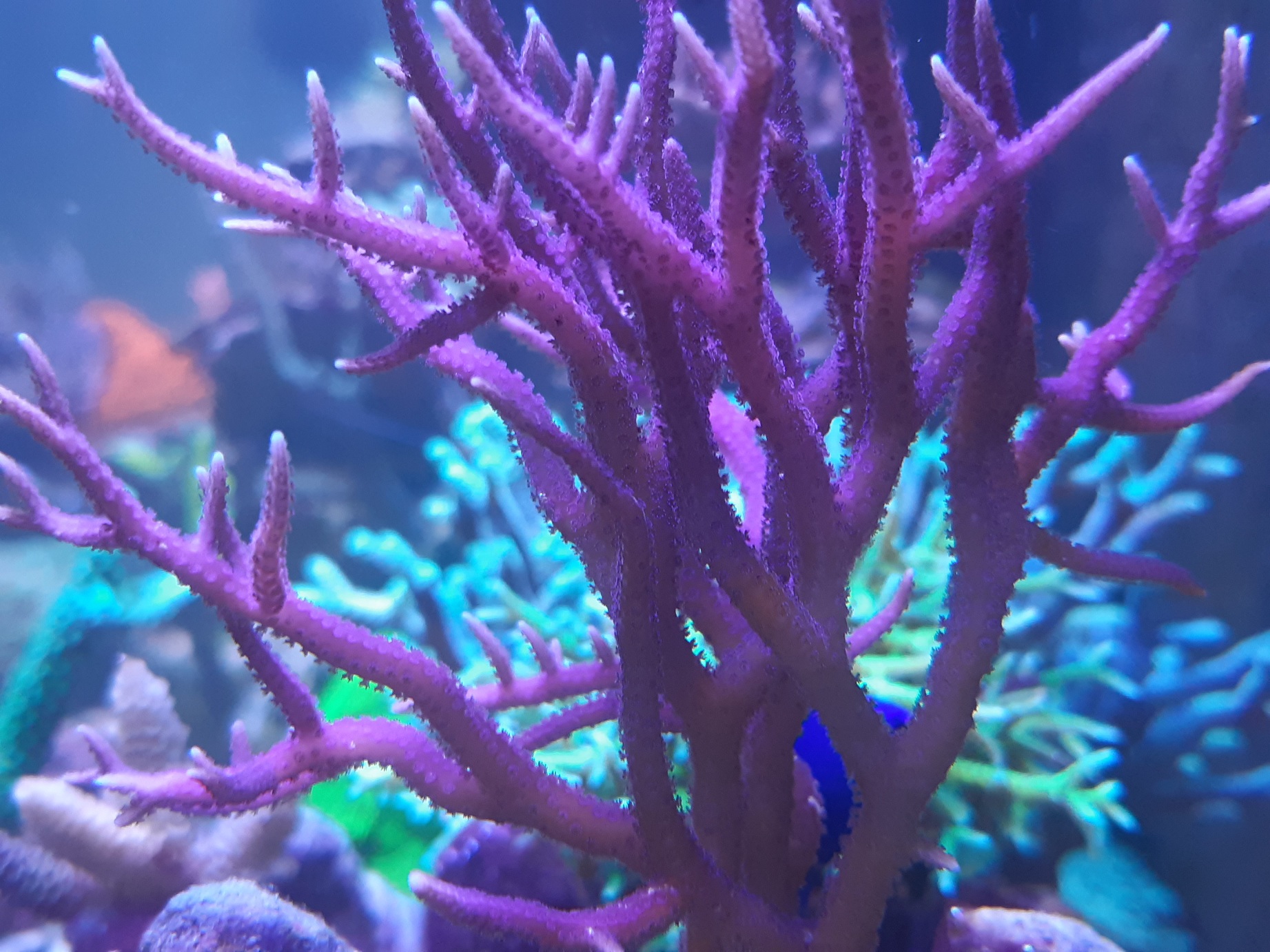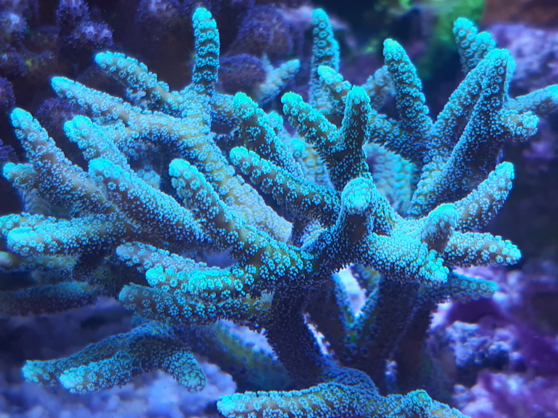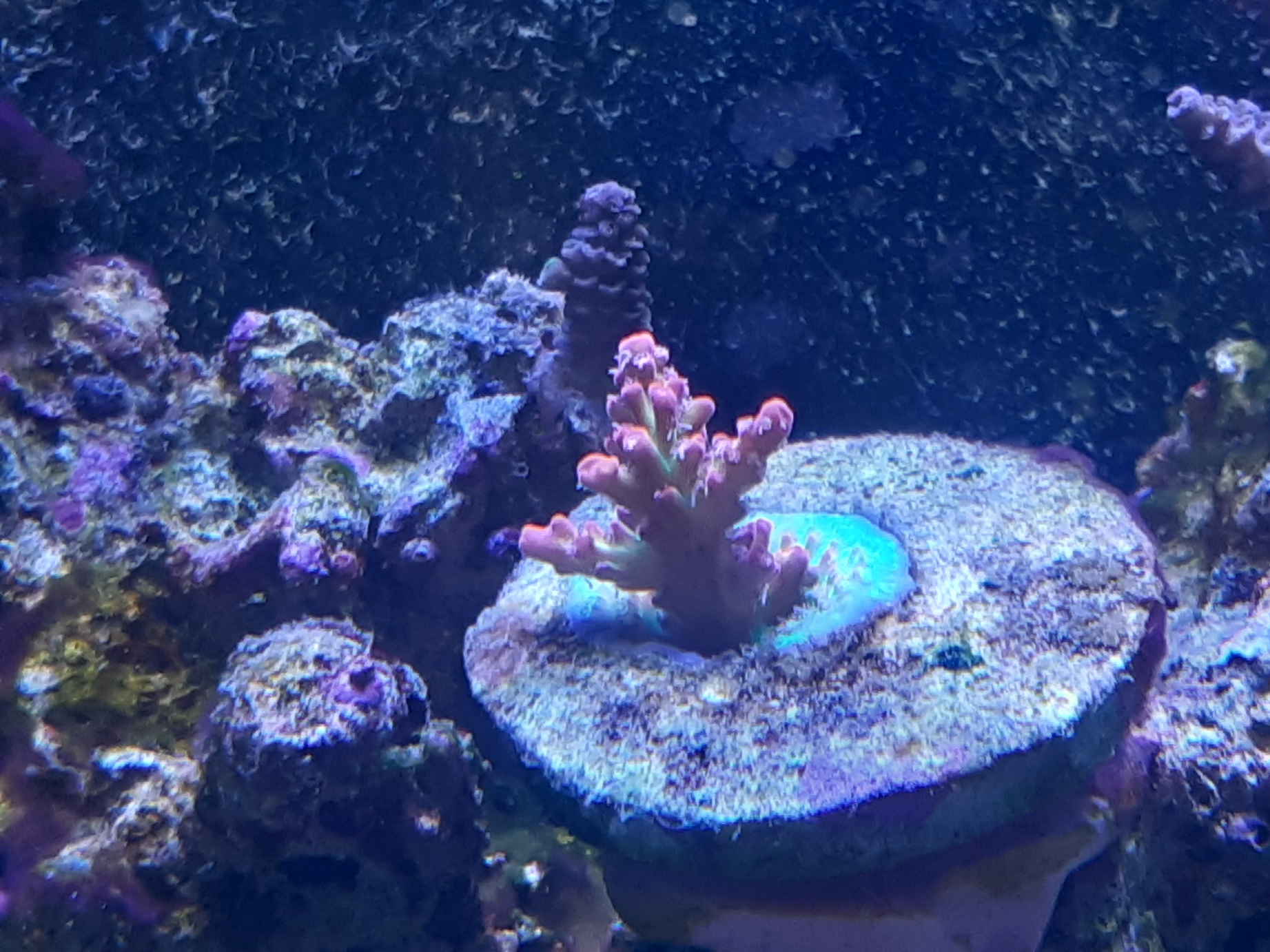 Die Korallen stehen aber relativ gut und zeigen auch Wachstum.
