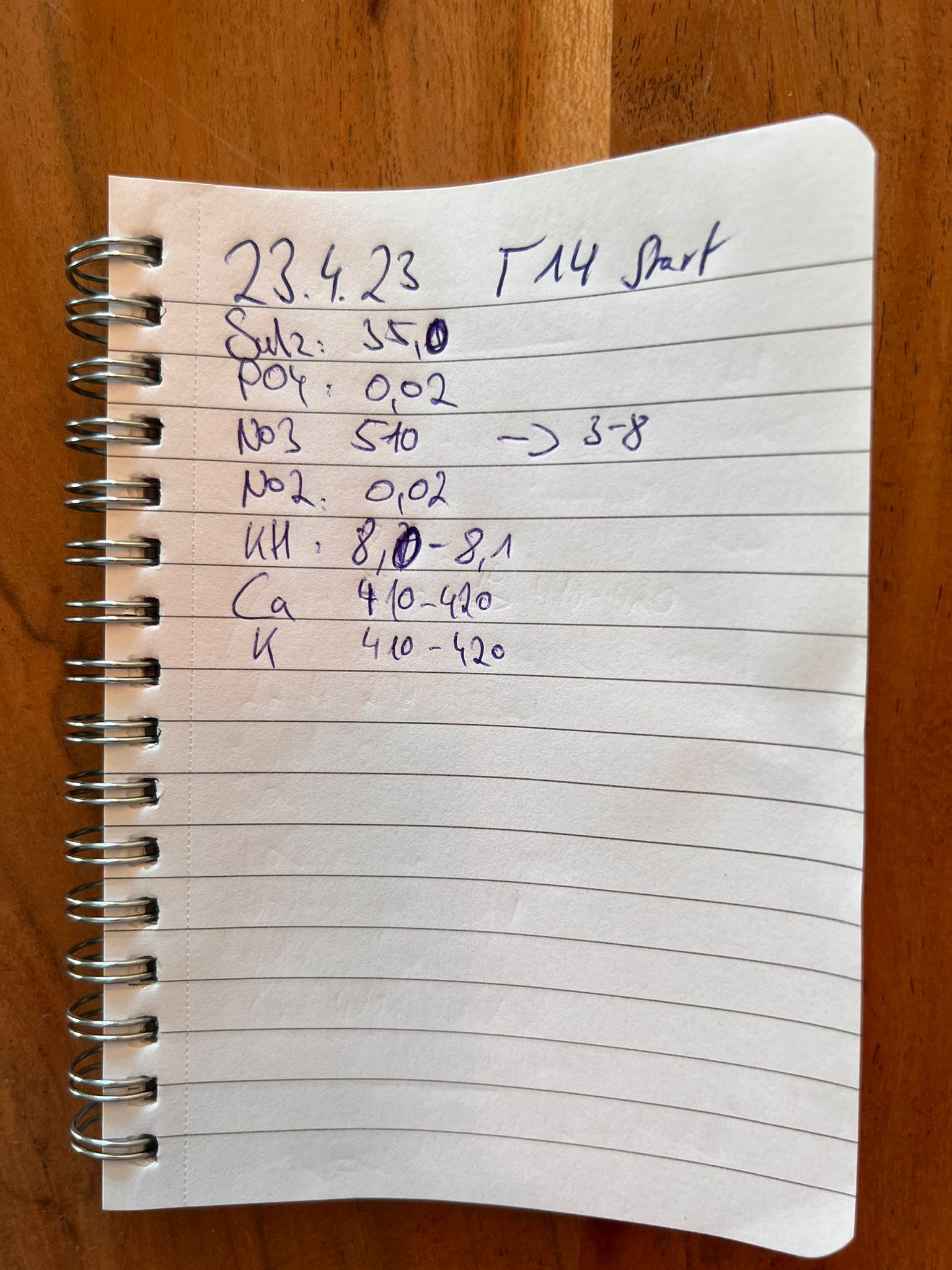 Da ich po4 0.02 habe wurde kein complex dosiert. Bei no3 war ich unsicher iwas zw 3-5 also hab ich mal mit halber Dosis von 0,5ml pro 100 gearbeitet.