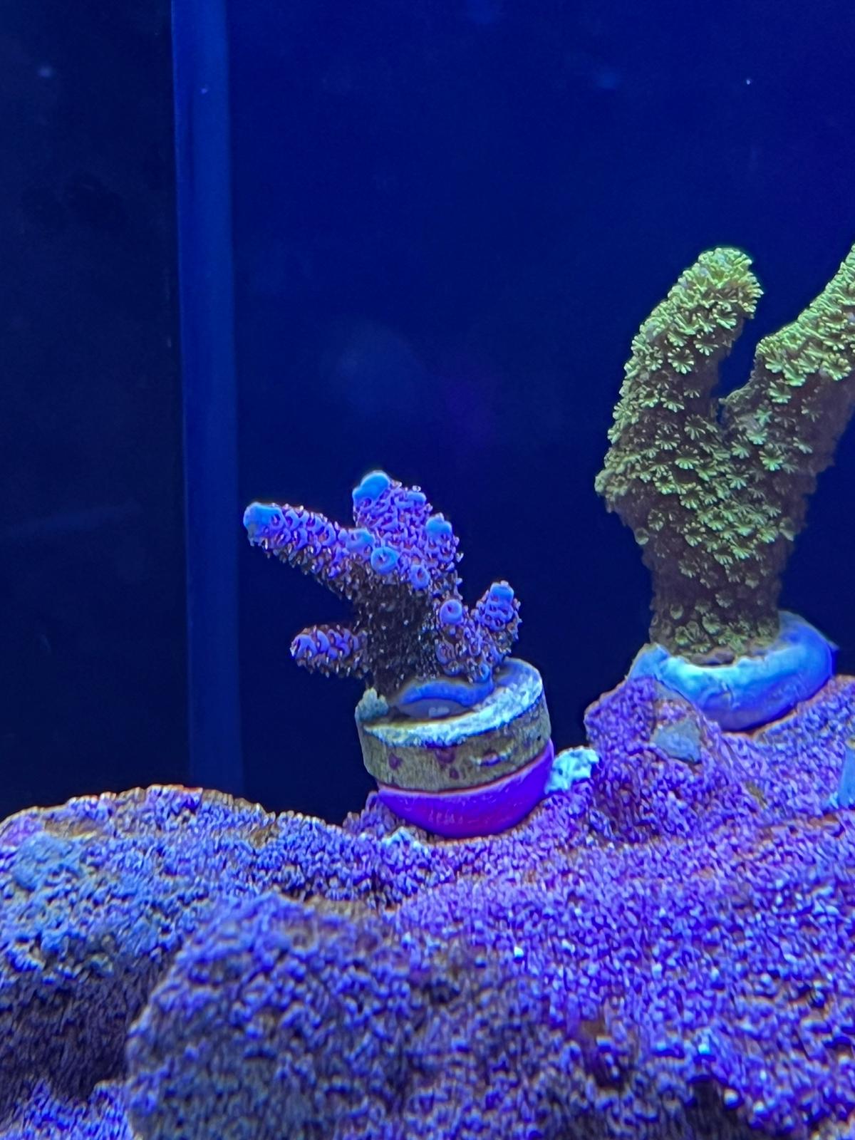 Korallen stehen alle gut bisher. Fische werden auch immer aufgeweckter. Sobald ich sehe die Korallen wachsen kommt ein paar oder ne kleine Gruppe ataenia dazu!