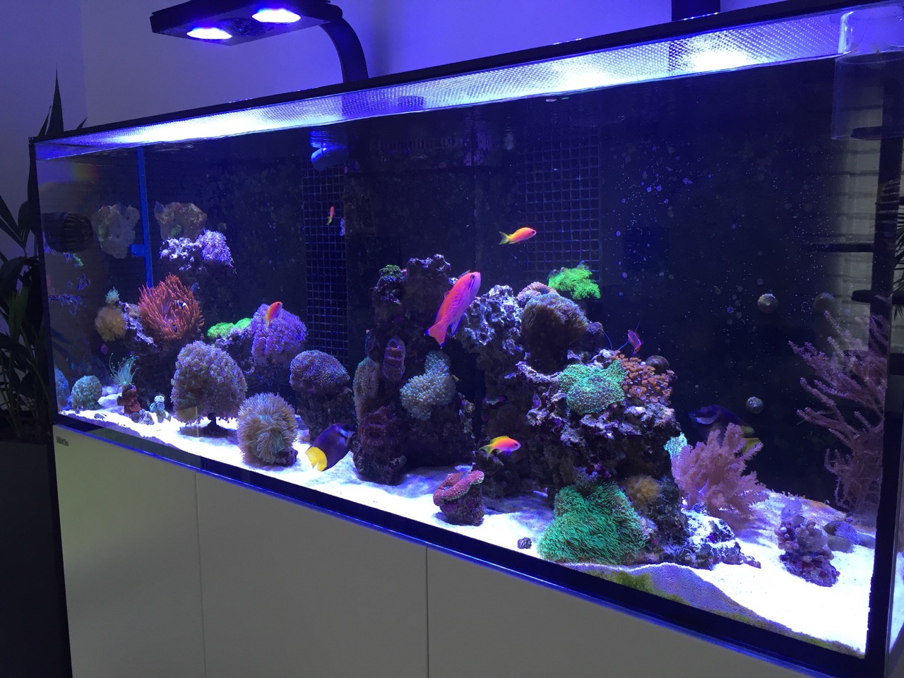 bei der Beleuchtung solltest du dir wirklich etwas einfallen lassen. Und Weitwinkellinsen reichen hier aus meiner Sicht nicht aus. Das ist definitiv zu wenig Licht für so ein großes Becken. Mit den jetzigen Lampen hast du extrem viele Schattenbereiche. Das ist halt generell ein Problem bei Lampen mit LED Spots.