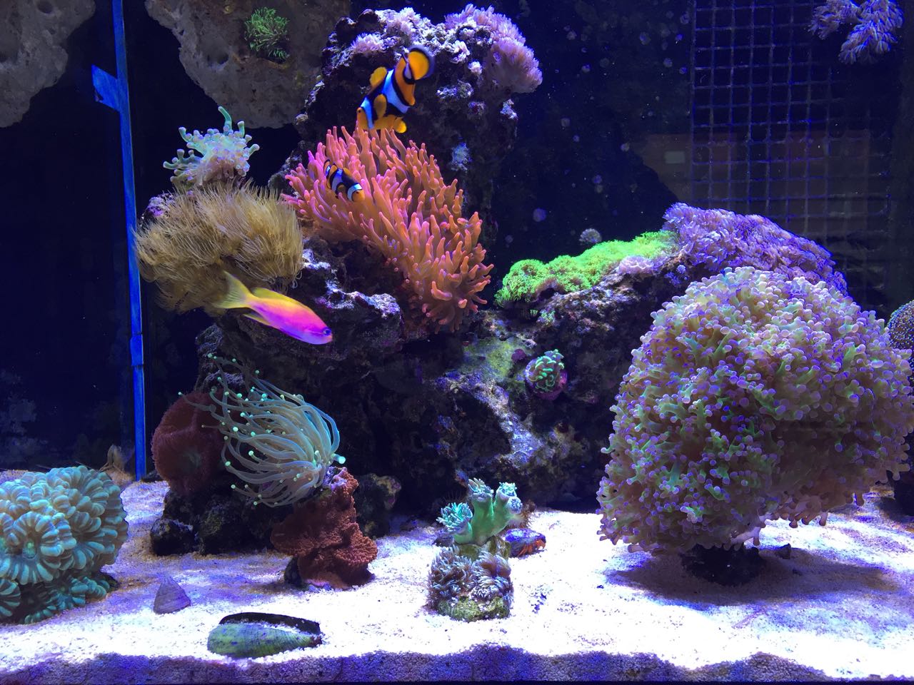 Ich hab mir nochmal die älteren Bilder angesehen. Da konnte man am Schacht eine Lichtrasterplatte sehen. Dadurch hast du da eventuell verschlechterte Strömungsverhältnisse und dem zu Folge andere Nährstoffverfügbarkeiten. Das ist zwar erstmal nicht so dramatisch aber kann ein Grund für die Algen sein. Hast du etwas an der Strömung geändert? Meine Gorgonie macht auch manchmal nicht auf. Diese nehmen aber Nährstoffmangel auch sehr übel.