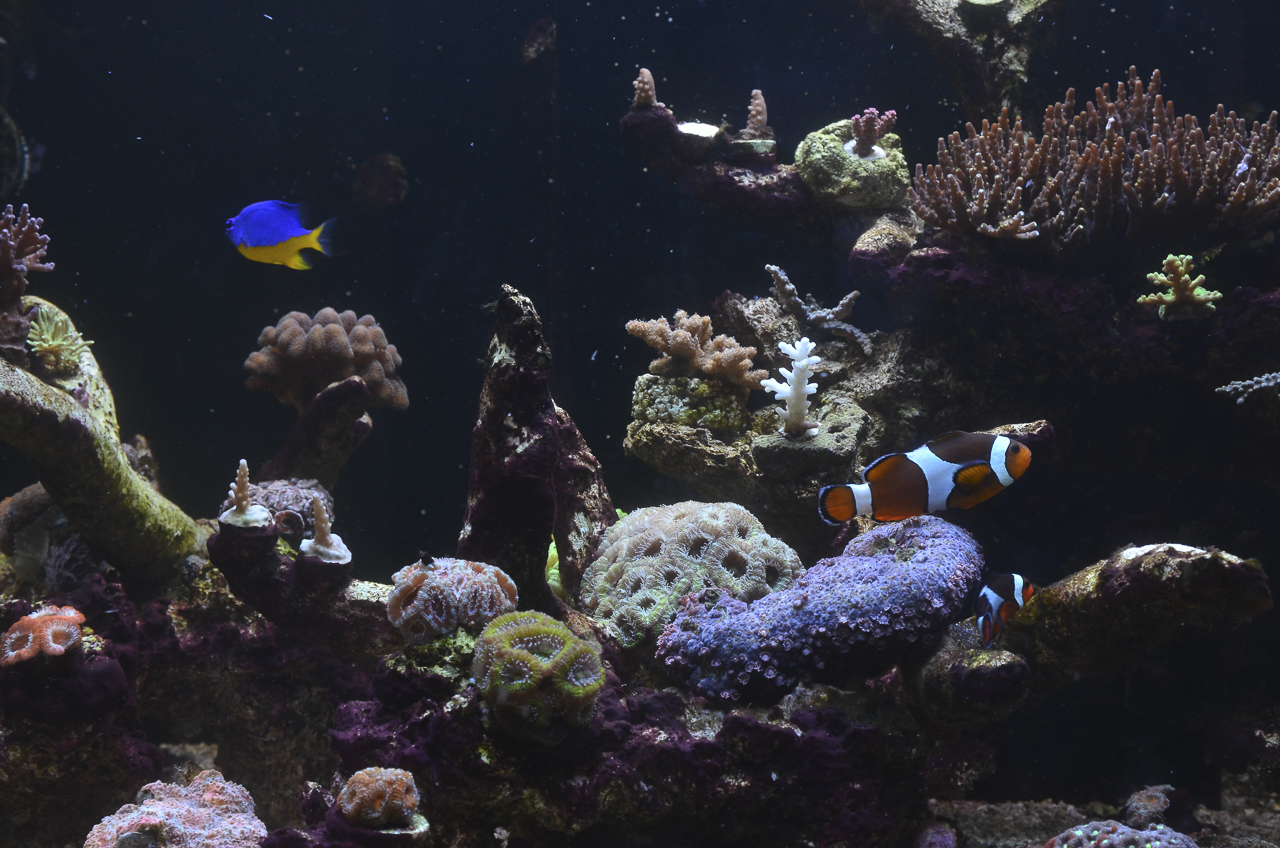 da ich das Gefühl habe, dass die eine Acro, die ein wenig mehr im Schatten steht, seit ein 1-2 Tagen ihrer Polypen mehr ausführt, habe ich das Licht nochmals um 10% reduziert. Vielleicht sind ja die 45% auch noch zu viel.