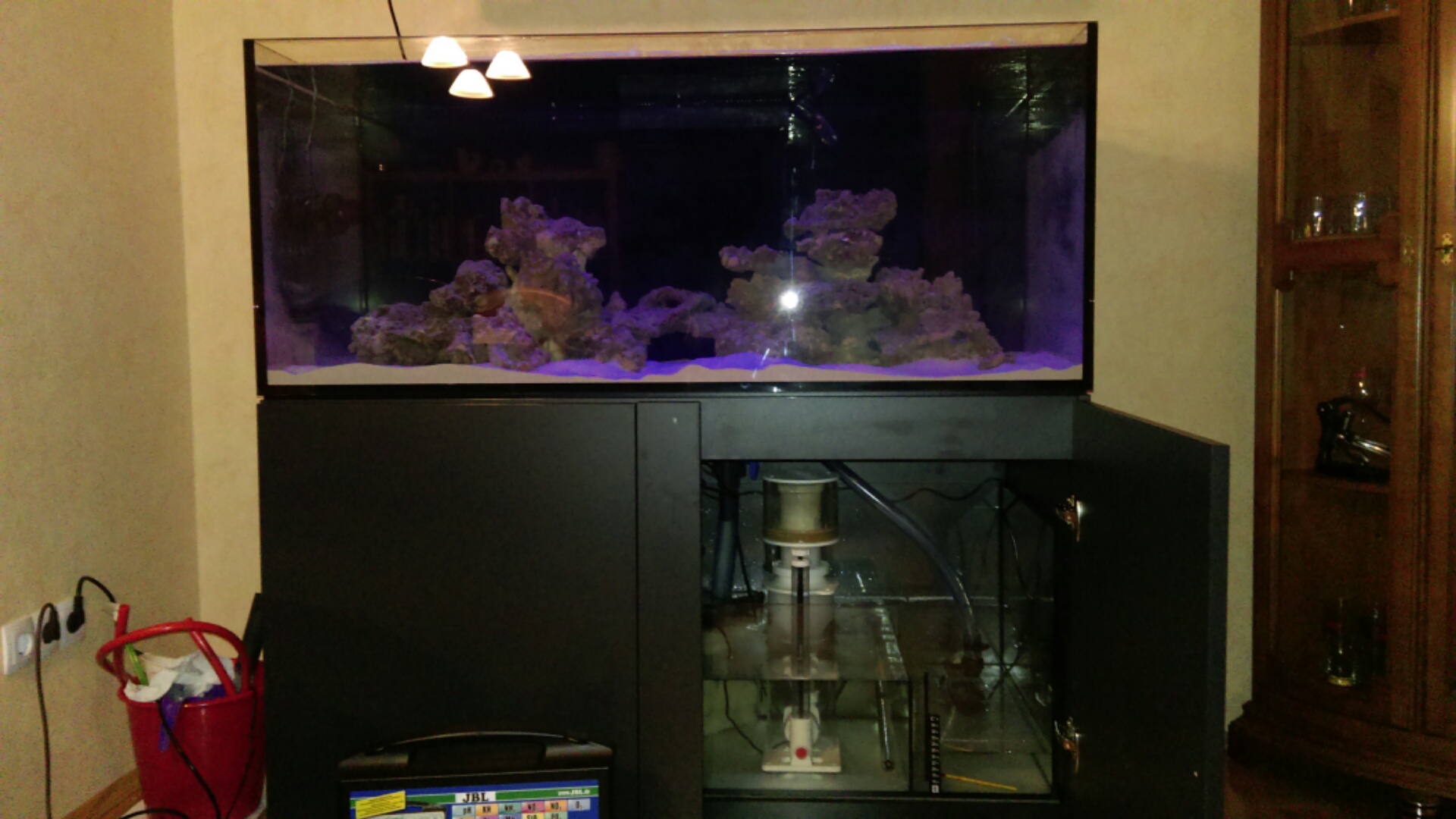 nach 8 Monaten Standzeit möchte ich hier mein (erstes) Riffaquarium vorstellen. Lebendgestein ist am 18.11.2015 eingesetzt worden; die Bodenreinigungscrew und die erste Weichkoralle kamen am 05.12.2015.