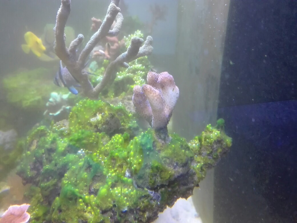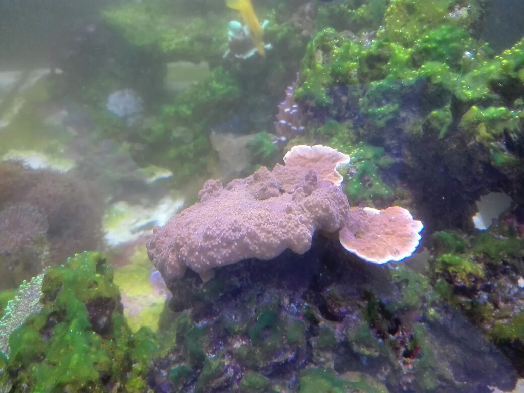 Eine Hystrix, die beim kauf ein richtig schönes Pink hatte, ist, ja wie soll ich sagen, eher Okkerfarben geworden, wobei die Polypen eher Violett sind, aber auch hier konnte ich in den letzten Tagen beobachten dass das Gewebe heller wird. Und allgemein sind meine Korallen nicht so schön Bunt wie man es eigentlich von Nährstoffarmen Becken gewohnt ist. Es fehlt absolute Brillanz bei den Farben.
