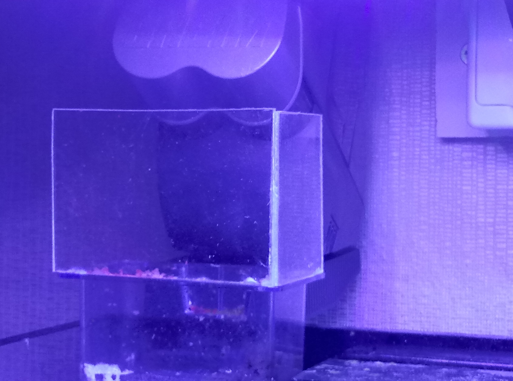 Und hier noch meine Kühlung für den Sommer + Springschutz, damit keine Fische in den Überlaufschacht springen.