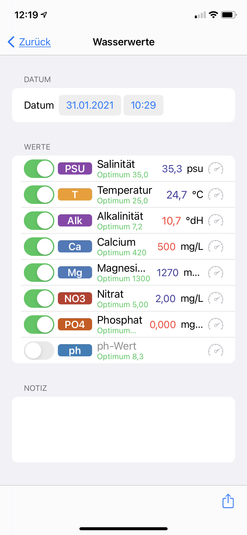 Dabei habe ich bei den ersten Test auch noch einen Fehler beim Ablesen gemacht. KH habe ich nochmal gegengemessen mit frischem Osmosewasser und TM Salz.