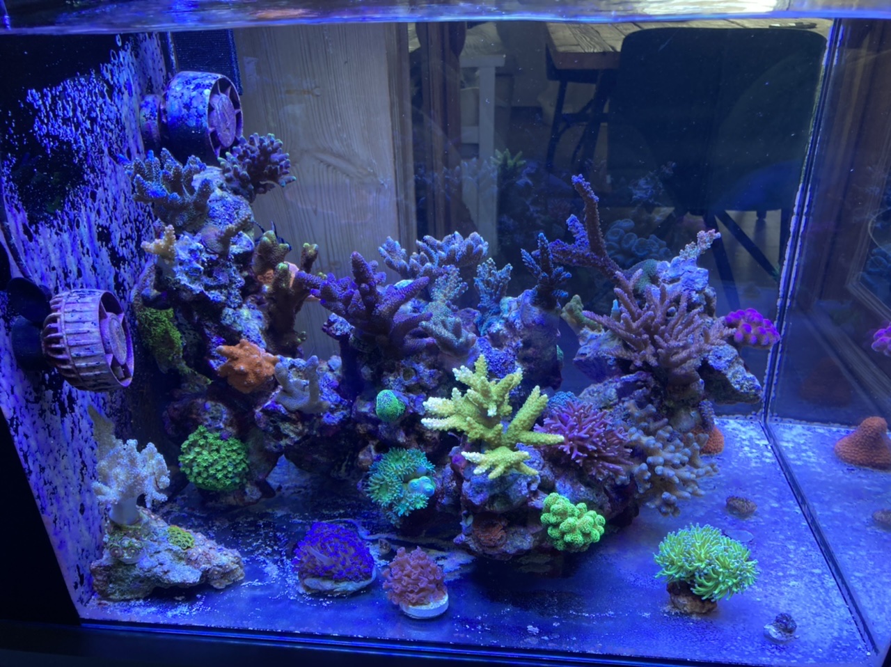 Futter: Frostfutter, ausschließlich Mysis. Sowie planktonPlus Nano Granulat und planktonPlus Mysis, das wird alle zwei Tage mit einer Pipette gezielt auf die LPS, Gonio und Zoas aufgebracht…