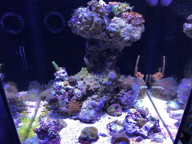 Hab noch einiges an Algen im Becken (siehe Boden links). An Verbrauchern, sprich Korallen, arbeite ich noch.