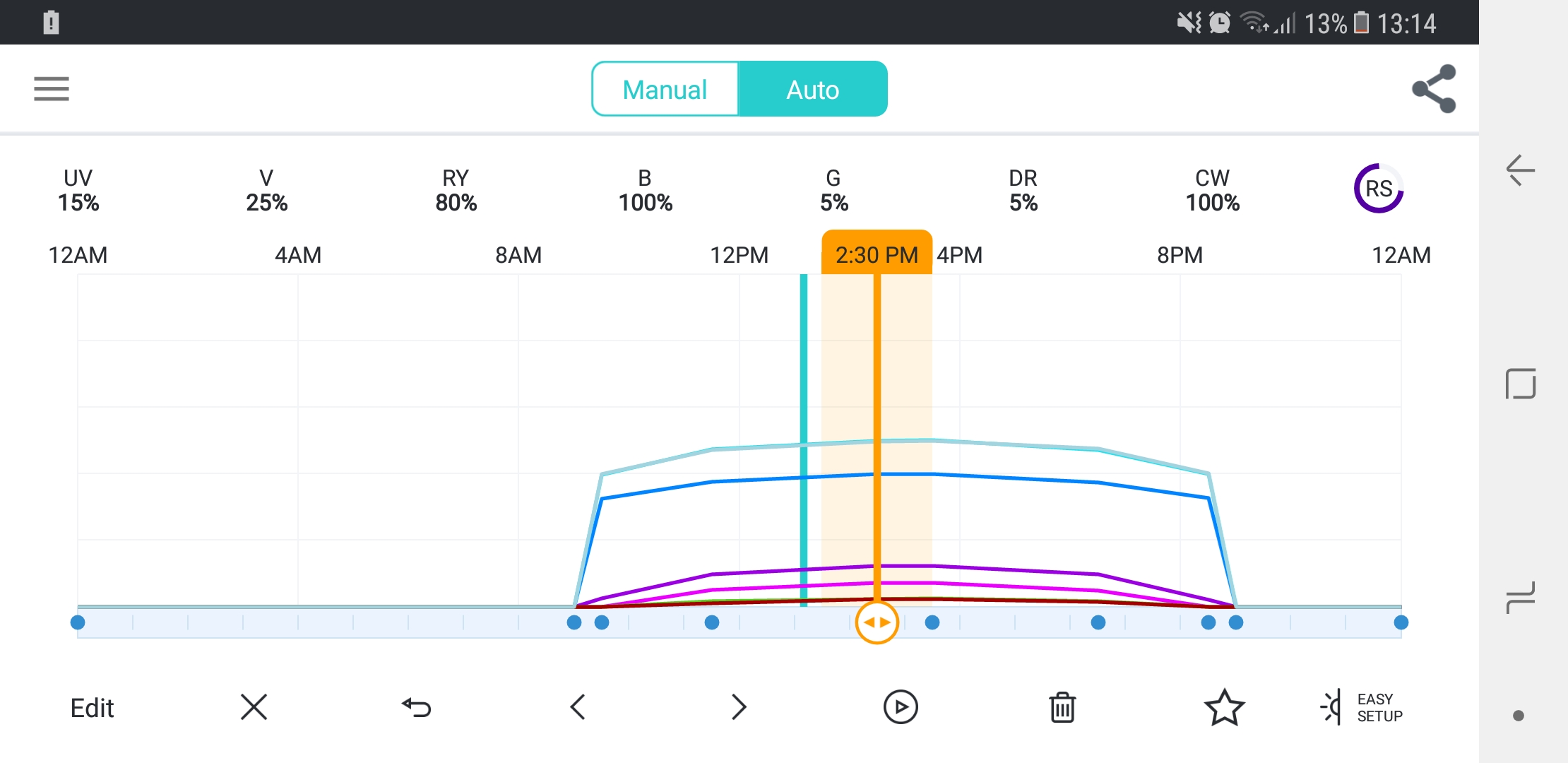 Ich kann mir für meine Hydra 26 mit den Hinweisen aus Jörgs großem PDF sowie dem häufig zu lesenden Rat, dass man für ein Becken ohne lichthungrige SPS mit ca. 0,5 Watt pro Liter rechnet, natürlich problemlos einen Beleuchtungsverlauf konfigurieren. Nur: Ich kann mir irgendwie nicht so recht vorstellen, dass dies völlig unabhängig davon ist, ob eine Lampe z.B. direkt auf dem Beckenrand aufliegt, oder, wie in meinem Fall, an der Decke hängt, wo der Abstand ja dann komplett variabel ist.
