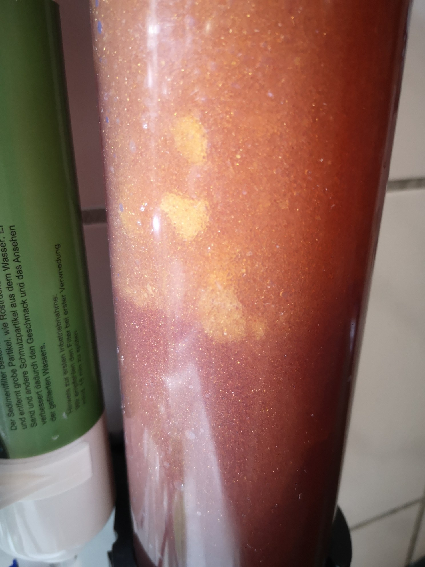 Nach dem Spülen bemerkte ich einen weißen Belag, komisch helle Flocken im Harzfilter und ein sinkender Geruch. Ist ein selbstgebauter Filter bestehend aus einem Pvc Rohr und Pvc Verschraubungen. Harz von Aqua Light, oben und unten jeweils ein bisschen Watte. Das Ganze letzte Woche neu befüllt.