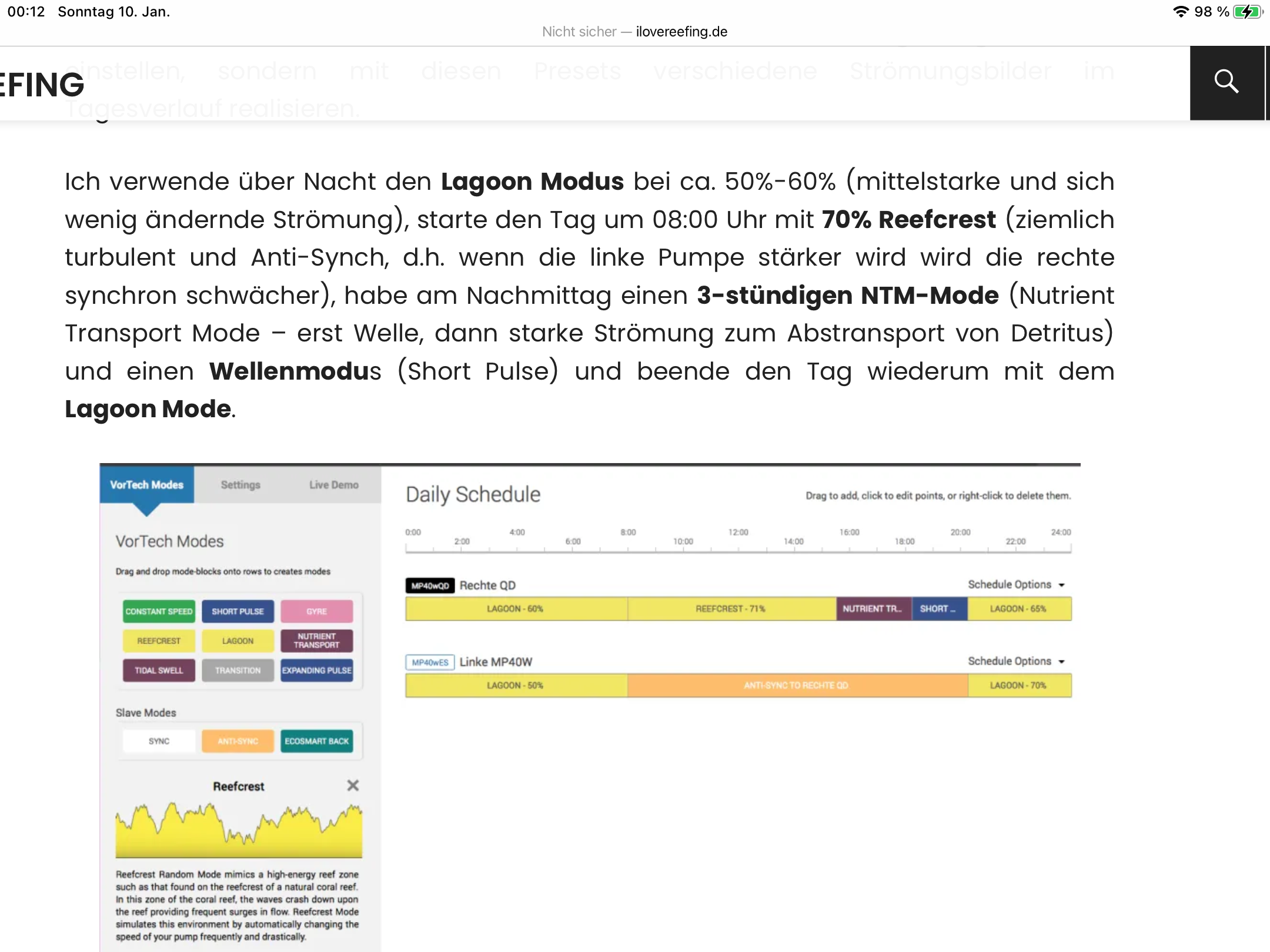 Ich Klinke mich hier mal ein. Der Weihnachtsmann hat mir zwei MP40Wqd geschenkt. Ich habe jetzt also 4xMP40 für mein 180x80cm Becken. Ich wollte sie ähnlich wie Artur positionieren. Rechts hinten oben, rechts vorne unten 1/3 über Boden. Links vorne oben und links hinten unten. Bei den Strömungsmustern bin ich noch absolut unschlüssig. Werde mal folgenden testen. Ich steuer nicht über den Reeflink, sondern über Mobius. Echt nett. IPad anschalten, Mobius aufrufen, einstellen, fertig.