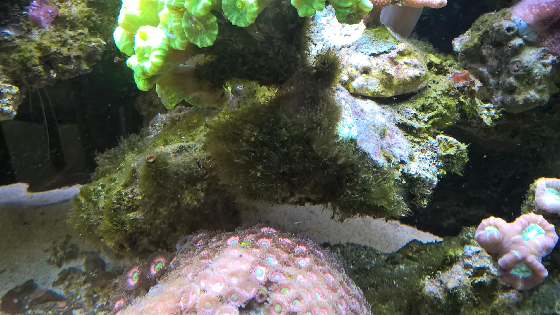Ich sehe da aber v.a. grüne Cyanos im unteren Bereich der Dekoration, dort wo es etwas schattiger und ggf. auch strömungsschwächer ist.
