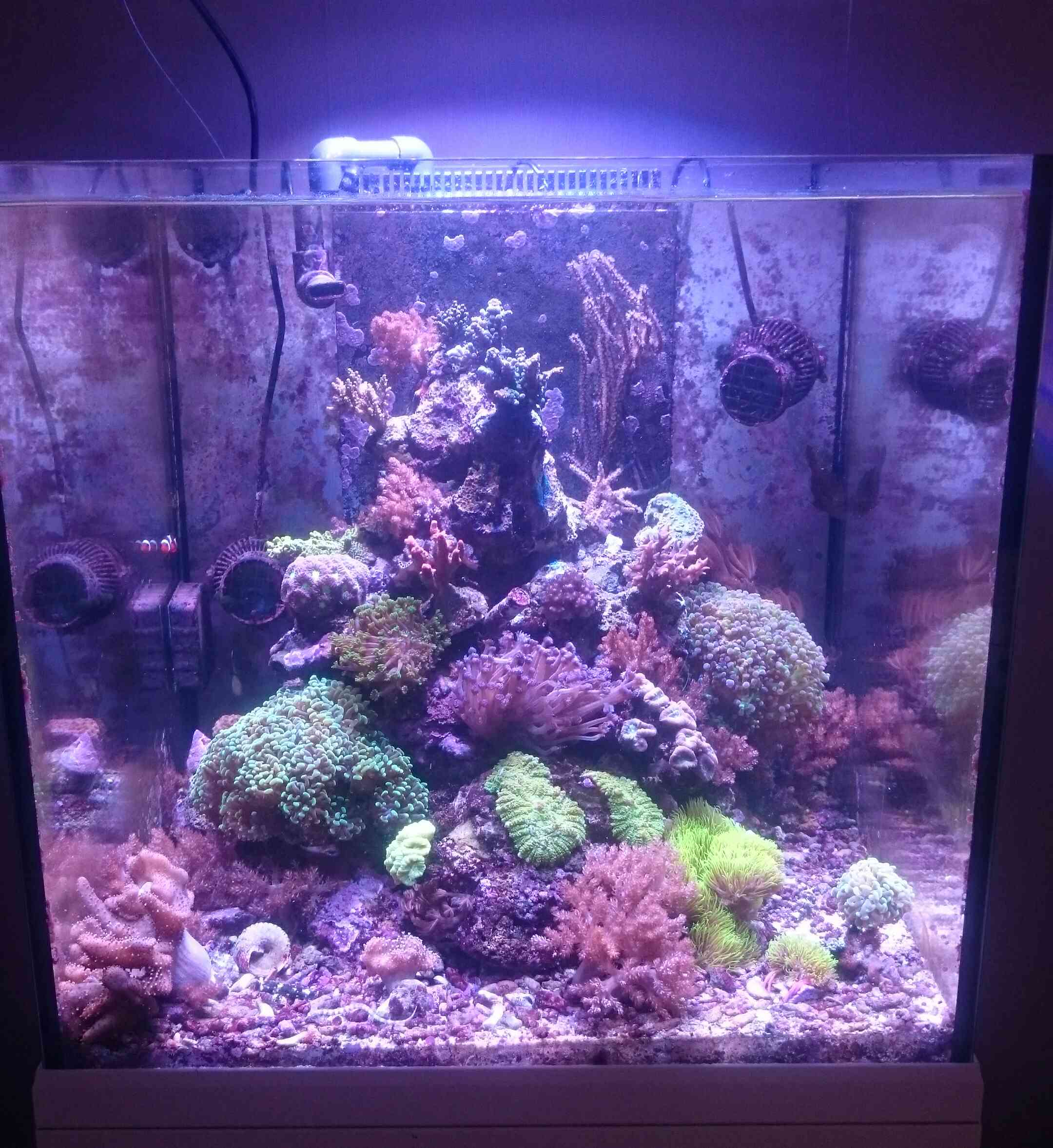 Hier habt ihr auch noch mal ein Bild vom gesamten Becken. Es handelt sich bei der betroffenen Koralle um die ganz oben auf dem Riff.