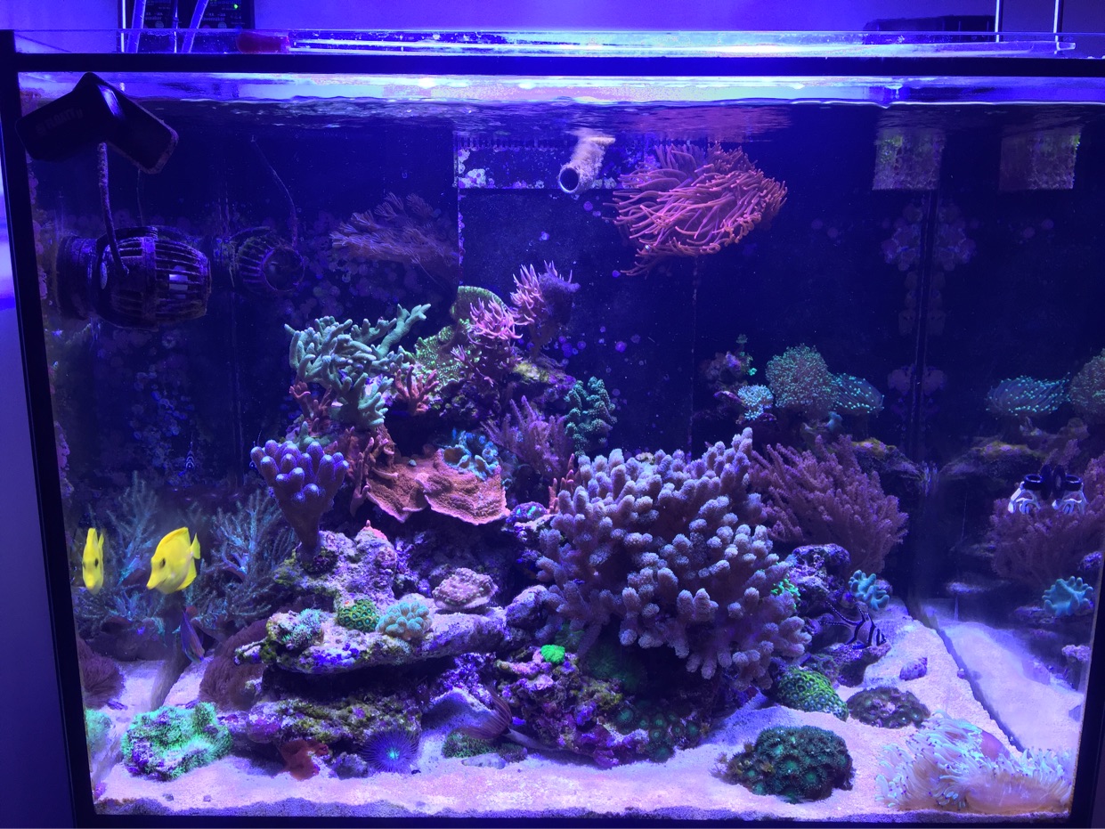 Das Becken läuft seit Jänner 2016. Betrieben wird es derzeit mit Balling und den Coral Colors von redsea.