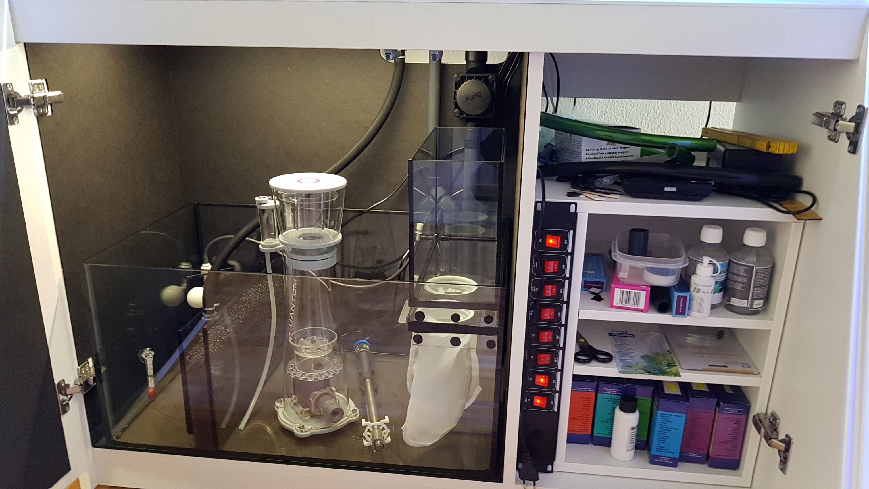 Dein Regal im rechten Schrank gefällt mir auch sehr gut, würde sich in meinem Reefer 350 ebenfalls gut machen...