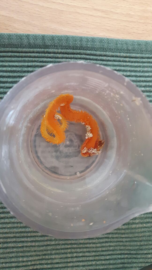Jetzt erst gesehen, den Beitrag. Das ist ein Feuerborstenwurm, den würde ich nicht nochmal einsetzen. Was hast Du mit dem Tier gemacht? Sieht ja farblich schon echt super aus, ist aber sehr sehr unangenehm bei Kontakt mit der Haut.