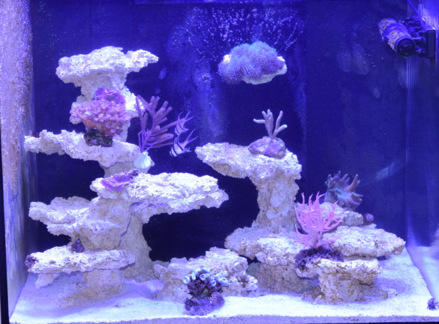 Bis auf die Gorgonie, einem kümmerlichen Rest vom Briareum und eine Weichkoralle sind mir alle Tiere eingegangen. Die verbliebenen machen auch keinen guten Eindruck.