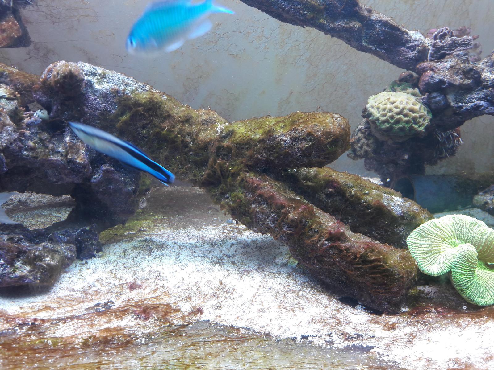 Bei den SPS Korallen ist das Polypenbild schlecht, zu Teil werden die Korallen weiß und ich habe grüne Beläge an den Scheiben (nach drei Tagen kann man kaum noch durch gucken).