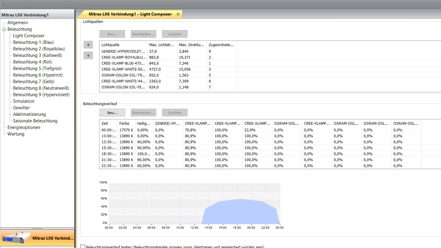 und den 425 nm Kanal über 10 Tage verteilt auf 25 % - jeden zweiten Tag dann um 5 % steigern. Das dürfte dann das Spektrum noch breiter machen im 450 nm Bereich.