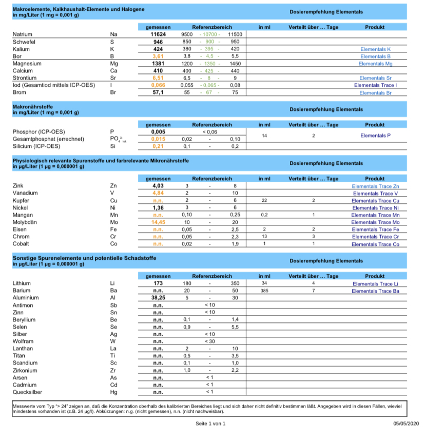 Deine errechnete Sali liegt mit 37 zu hoch. Diese solltest du auf 35 senken. Dem gegenüber ist dein Bor und Jod zu niedrig. Diese solltest du nach dem Sali-Angleich auch anpassen, Bor auf 4 und Jod auf 0,08.