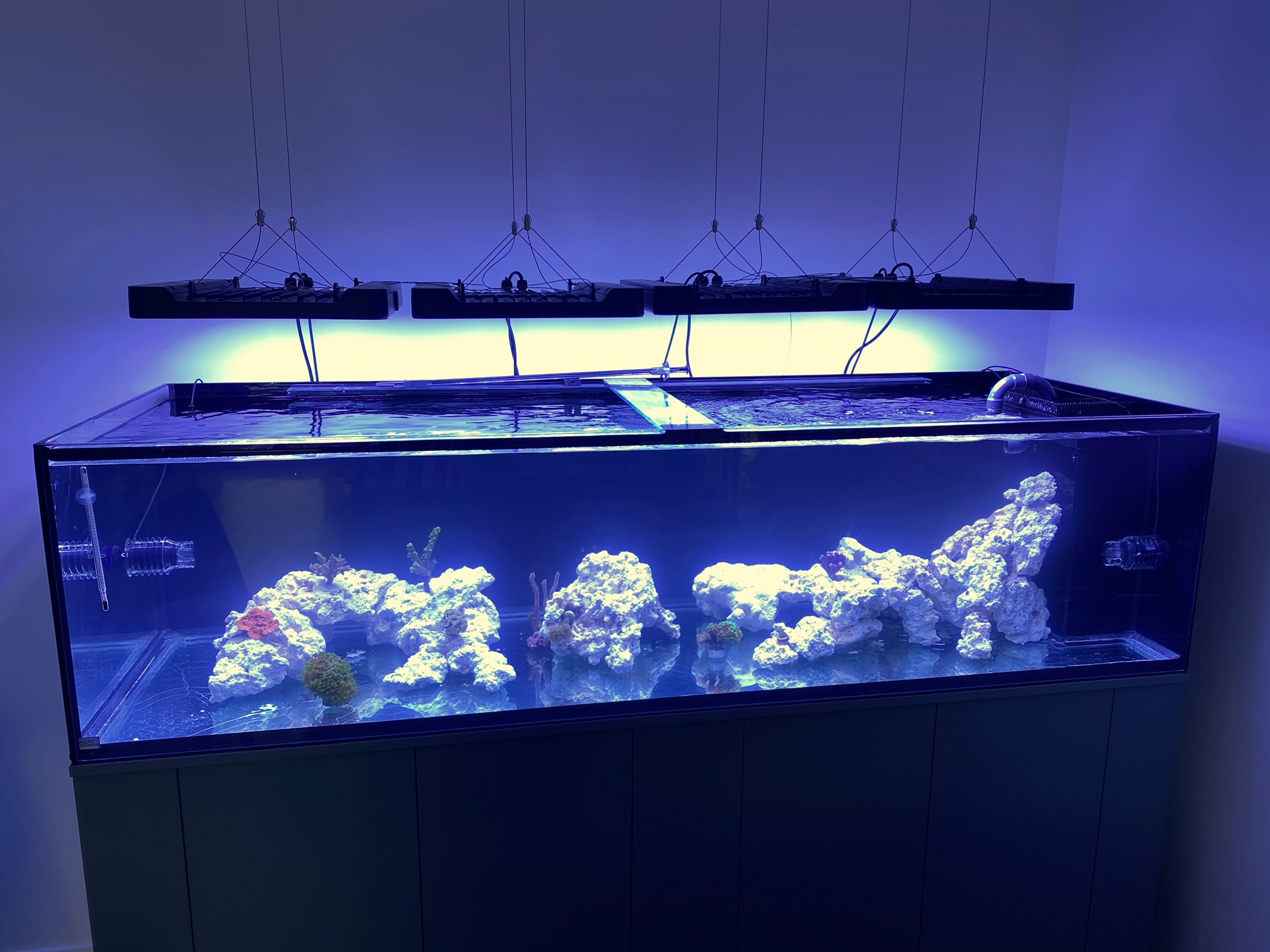 Hey, nee sind noch 2 Lampen dazugekommen. Ich hab nur ne andere Halterung anfertigen lassen. Gestern sind auch die ersten Korallen eingezogen.