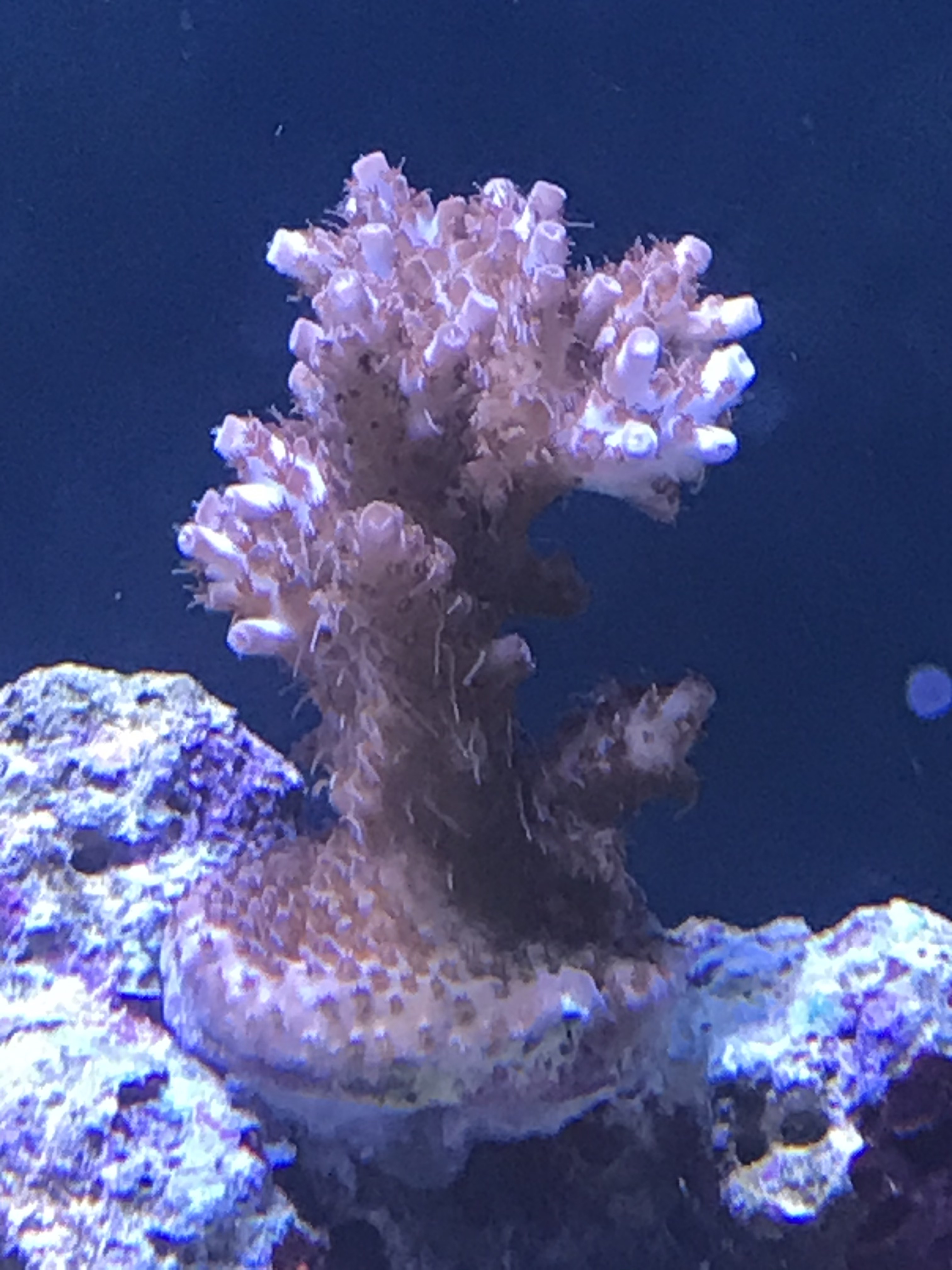 Ansonsten geht es allen Korallen gut, bis natürlich auf eine, meiner roten Goniopora. Sie zeigt seit einiger Zeit keine Polypen. Mangan habe ich nach Empfehlung von ATI dosiert. Laut FM können Gonioporas ein Indikator für Mangan Mangel sein.