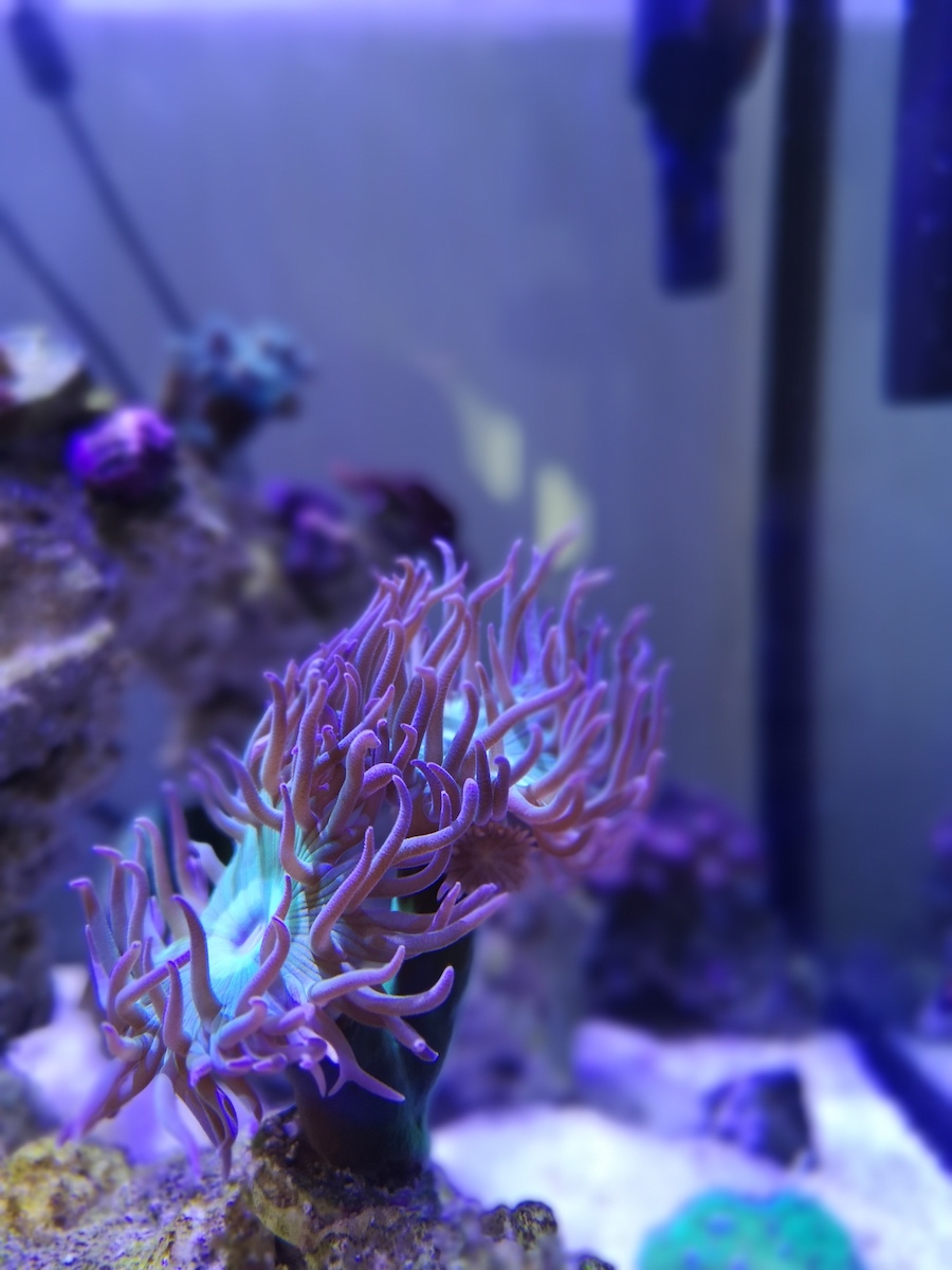 Ansonsten steht das Becken nun den 5. Tag und keine Koralle macht wirklich Probleme. Alle zeigen ein tolles Polypenbild (wenn der Percula nicht gerade in der Bartkoralle kuschelt)