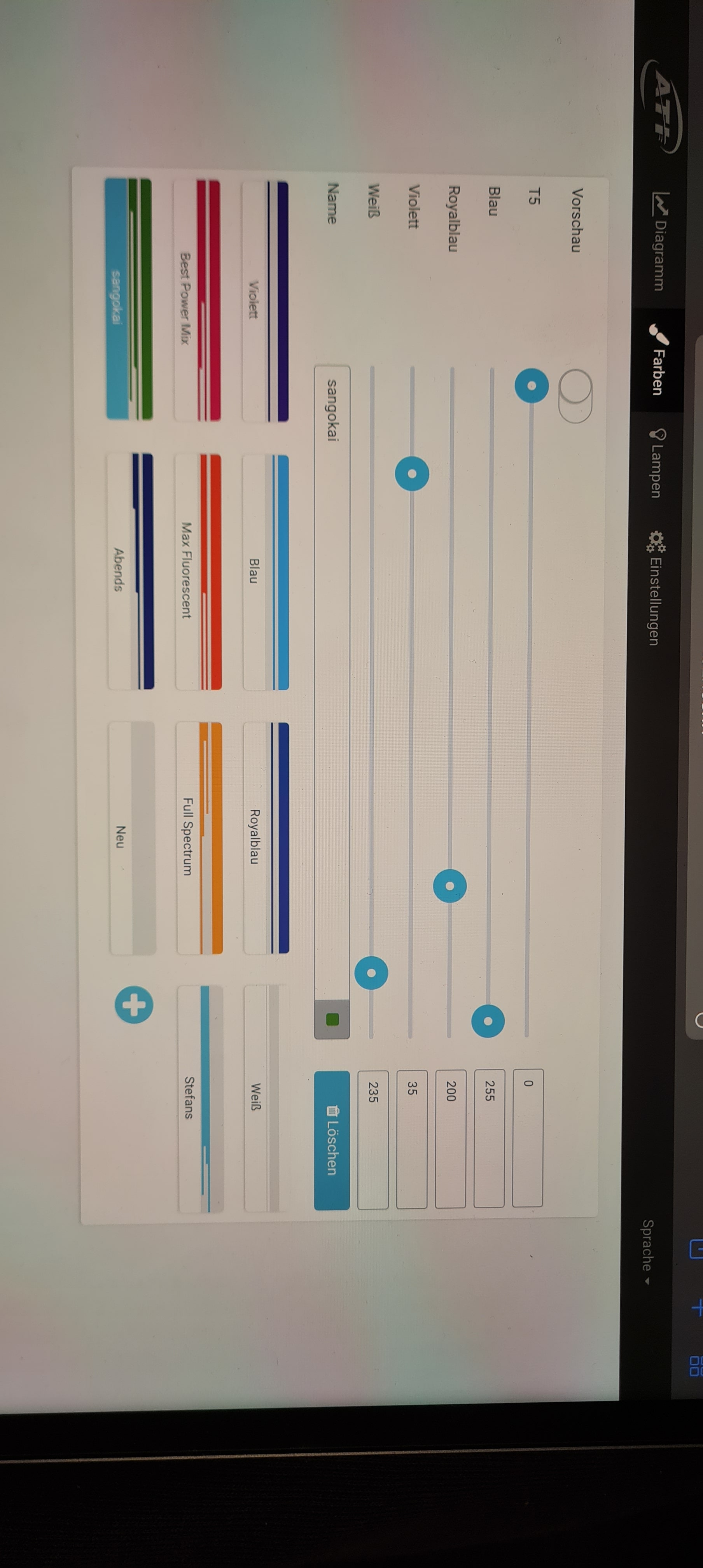 T5 kannst du durchgehend anlassen. Als ich Dinos hatte habe ich auch T5 angelassen, ab Start ohne Dimmen auf 100%, LED auf 30% runter, Farben habe ich wie folgt eingestellt