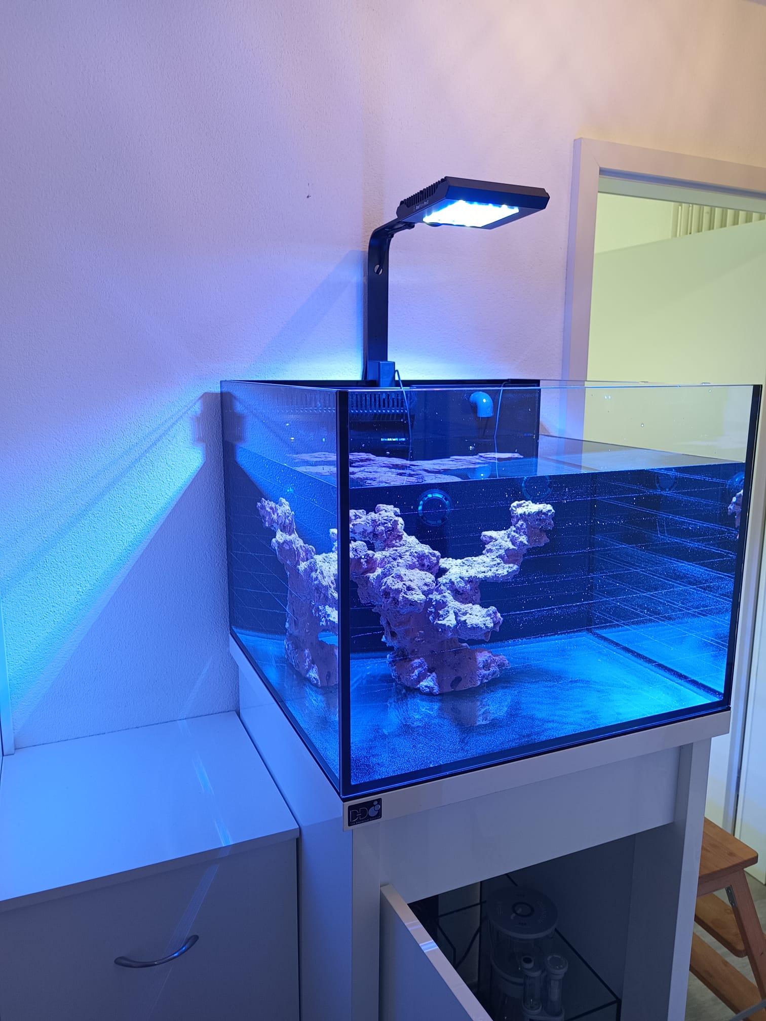 Nachdem ich jetzt die meiste Technik bekommen habe und auch installiert habe, habe ich mein Becken heute das erste mal mit Osmosewasser gefüllt.