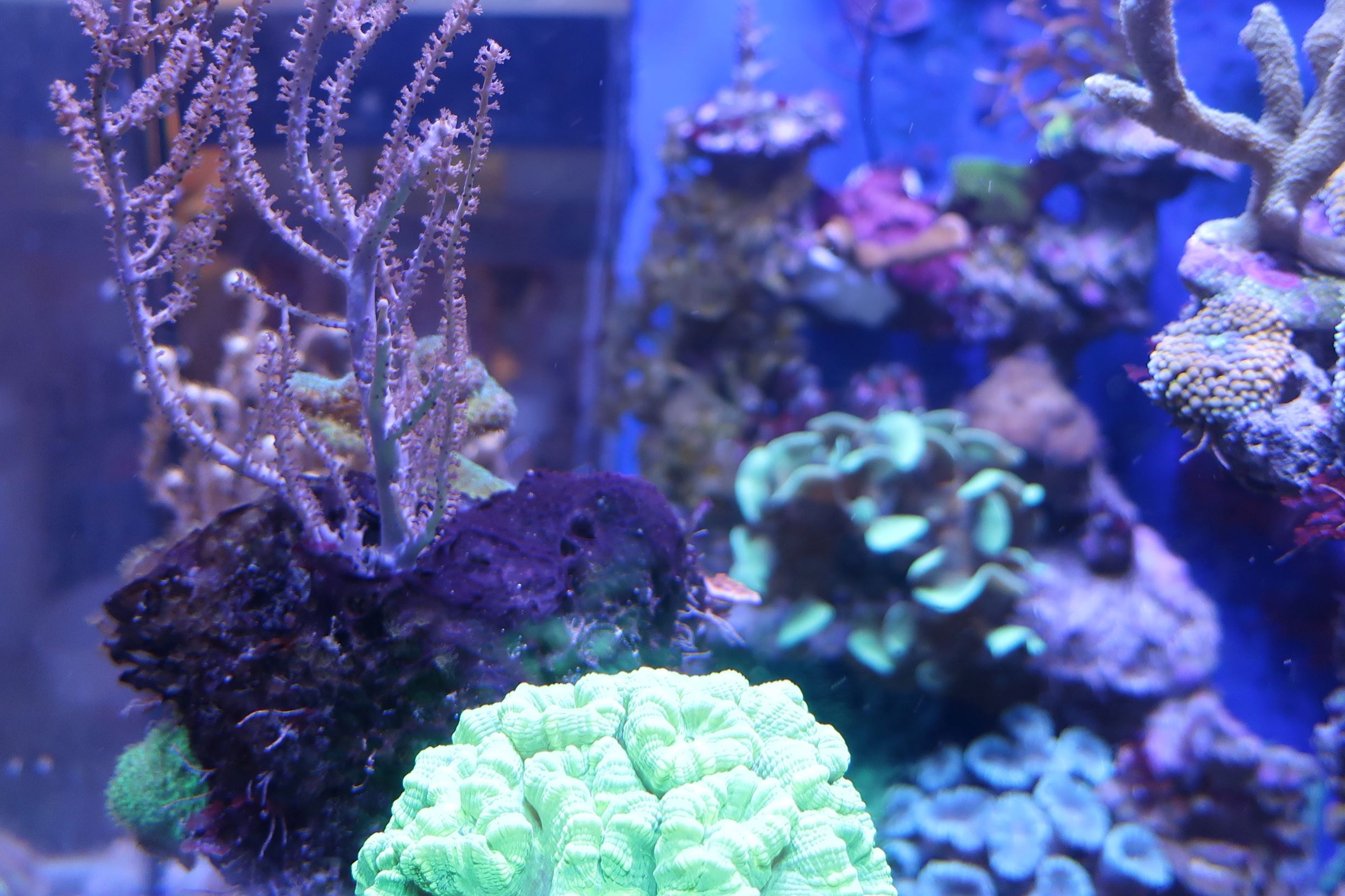 Farbentechnisch hatte ich mir bei Meerwasser allerdings mehr erhofft. Auf Bildern sehen die Aquarien immer so knallig bunt aus aber unsere Korallen sind eher blass oder braun.