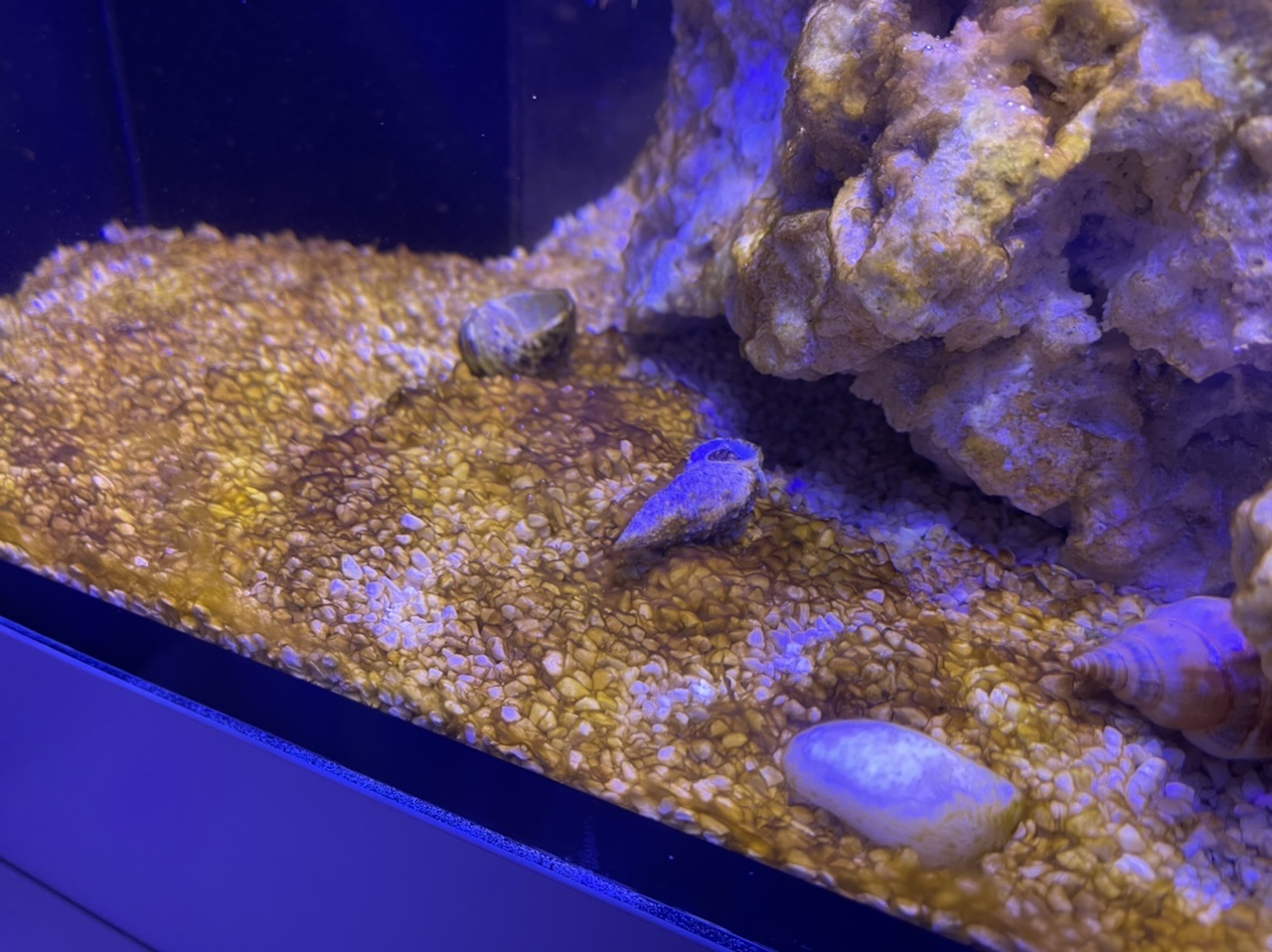 - vom Händler direkt ein frisches Stück Lebendgestein mit Schwämmen und einer Muschel gekauft